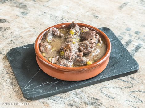 Tapa de pulpo encebollado, ensaladilla rusa, albóndigas a la menorquina, pollo al curry, tortilla de patata casera y bocatas especiales.