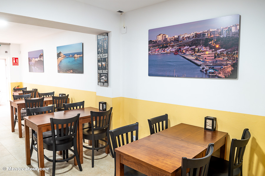 Bar restaurante situado en el centro de Mahón muy cerca de la estación de autobuses. Local amplio y acogedor con una amplia variedad de platos. Además disponemos de menú semanal muy variado.