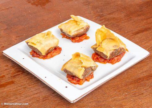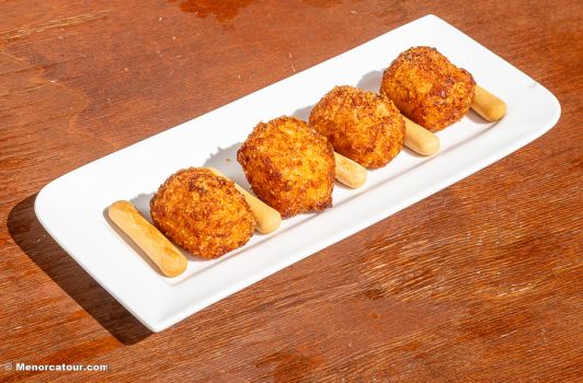 Tapas Clásicas y de Autor: Desde nuestras famosas Croquetas de Gambas de Menorca hasta el innovador Crujiente de rabo de toro.