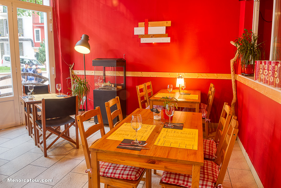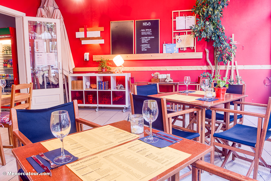 Abierto todo el año desde el 2015 el rojo pomodoro esta en el pueblo de Es Castell, pequeño pueblo de pescador con encanto. En invierno podrás disfrutar del calor de nuestras estufas y nuestro “rojo” interior.La terracita de verano con su frescor por estar cerca del mar.